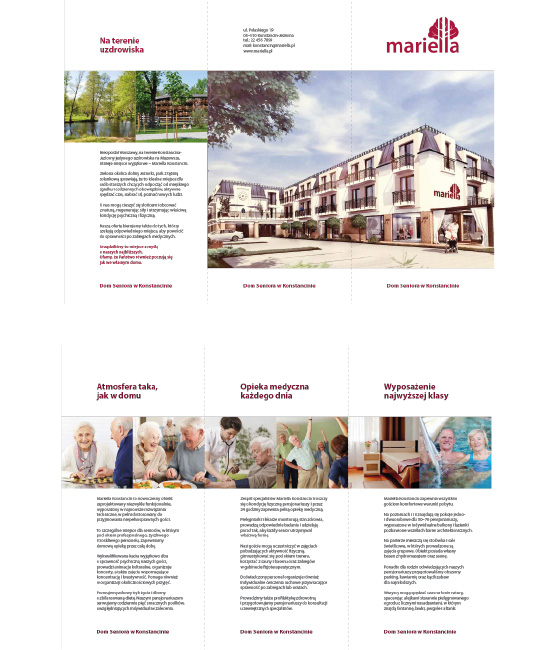 Mariella to inwestor i operator nowoczesnych domów seniora. Pierwsza placówka powstaje na terenie Konstancina‑Jeziorny, jedynego uzdrowiska na Mazowszu. Prestiżowa lokalizacja wymagała stworzenia adekwatnych rozwiązań nawiązujących do herbu miasta i zielonej okolicy