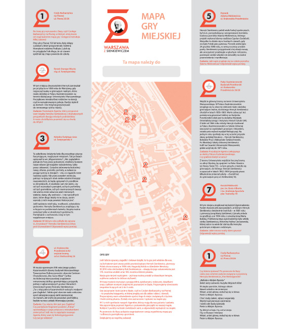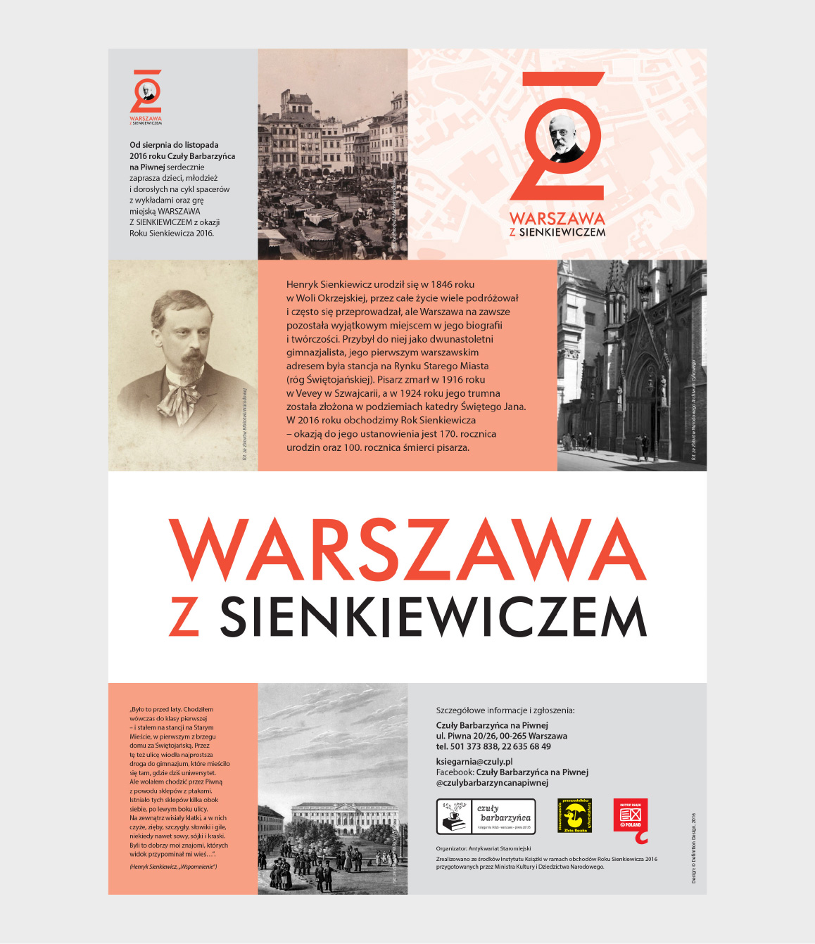 Rok 2016 był rokiem obchodów Roku Sienkiewicza ‑ przypadające okrągłe rocznice urodzin i śmierci wybitnego pisarza, stały się okazją do przypomnienia życia i twórczości laureata literackiej Nagrody Nobla z 1905 roku. Henryk Sienkiewicz był związany z Warszawą ‑ stąd wziął się pomysł zorganizowania jego śladami serii spacerów edukacyjnych, połączonych z grą miejską, nie tylko