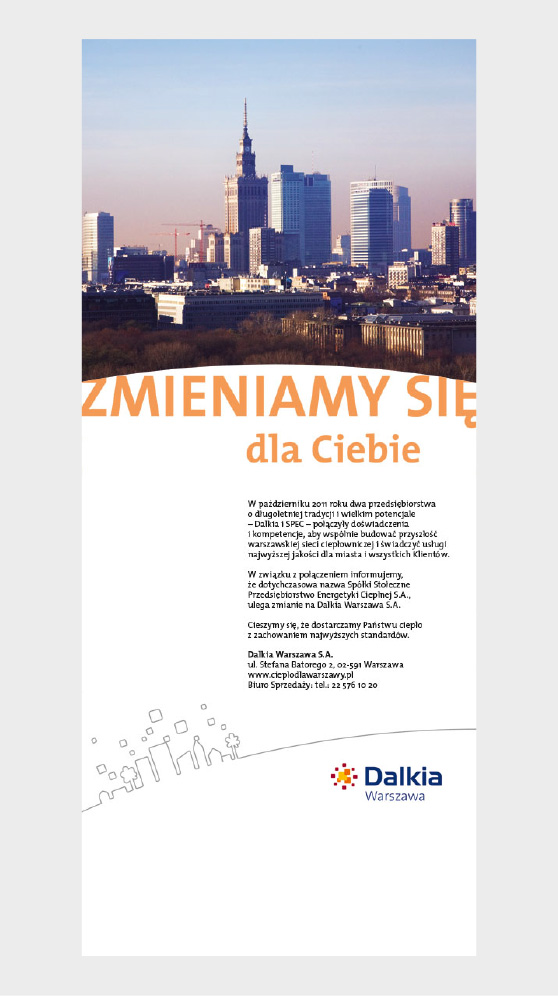 Dalkia Warszawa to spółka, która powstała w wyniku sprzedaży, inwestorowi francuskiemu firmy SPEC, miejskiego dostawcy ciepła. Począwszy od 2012 roku Definition Design kontynuowało współpracę z nową firmą, przygotowując materiały dla komunikacji marketingowej ‑ m.in. kampanie reklamowe realizowane w mediach drukowanych i w Internecie. Dużym wyzwaniem