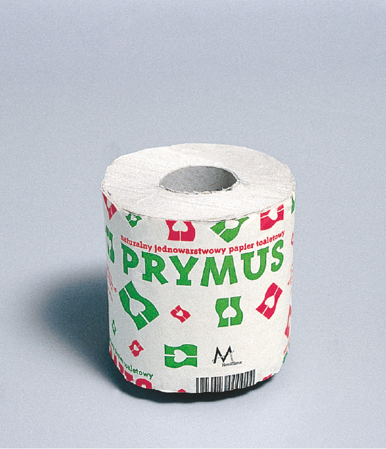 wraz z logotypem oraz rozwiązań opakowań jednostkowych i zbiorczych. Tak narodził się Prymus ‑ naturalny jednowarstwowy papier toaletowy. W założeniu był to produkt tani ‑ stąd pomysł wpadającej w ucho nazwy, prostej formy charakteryzującej się czytelną inspiracją oraz niskobudżetowy trzykolorowy druk.